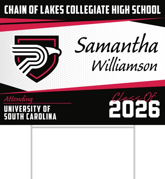 These Chain of Lakes Collegiate High School graduate yard signs are the perfect addition to any home and are a great way to let your friends, family and neighborhood know you have made it!