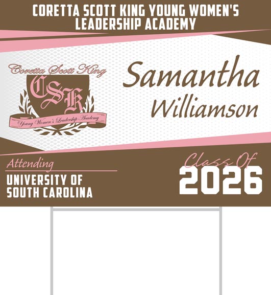 These Coretta Scott King Young Women’s Leadership Academy graduate yard signs are the perfect addition to any home and are a great way to let your friends, family and neighborhood know you have made it!