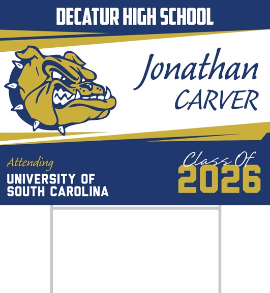 ClassOfYardSigns.com is the leading recognition and motivation expert! We are here to celebrate your academic achievement with custom yard signs. These Decatur High School graduate yard signs are the perfect addition to any home and are a great way to let your friends, family and neighborhood know you have made it!