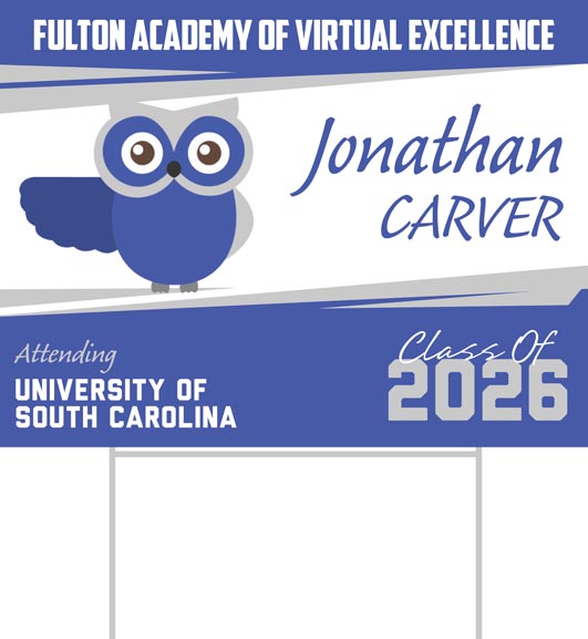 ClassOfYardSigns.com is the leading recognition and motivation expert! We are here to celebrate your academic achievement with custom yard signs. These Fulton Academy Of Virtual Excellence graduate yard signs are the perfect addition to any home and are a great way to let your friends, family and neighborhood know you have made it!