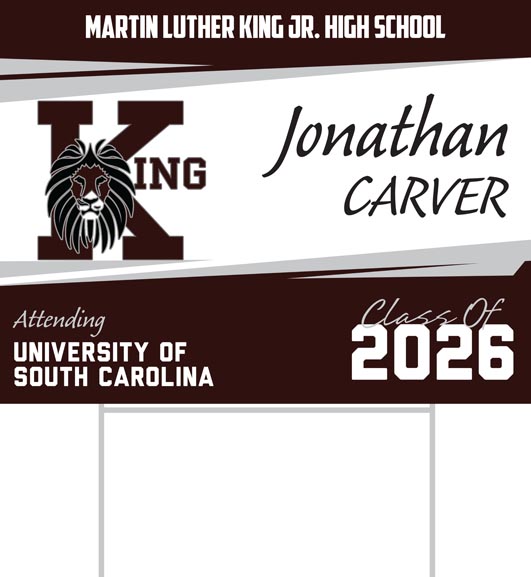ClassOfYardSigns.com is the leading recognition and motivation expert! We are here to celebrate your academic achievement with custom yard signs. These Martin Luther King Jr High School graduate yard signs are the perfect addition to any home and are a great way to let your friends, family and neighborhood know you have made it!