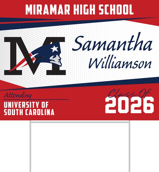 These Miramar High School graduate yard signs are the perfect addition to any home and are a great way to let your friends, family and neighborhood know you have made it!