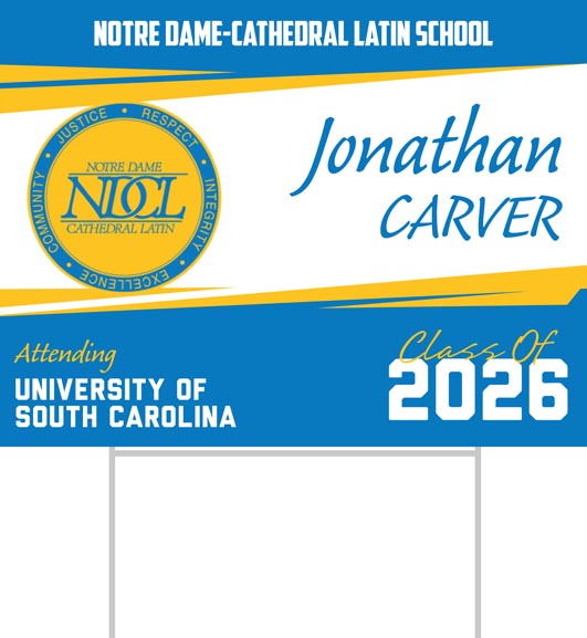 These Notre Dame-Cathedral Latin School graduate yard signs are the perfect addition to any home and are a great way to let your friends, family and neighborhood know you have made it!